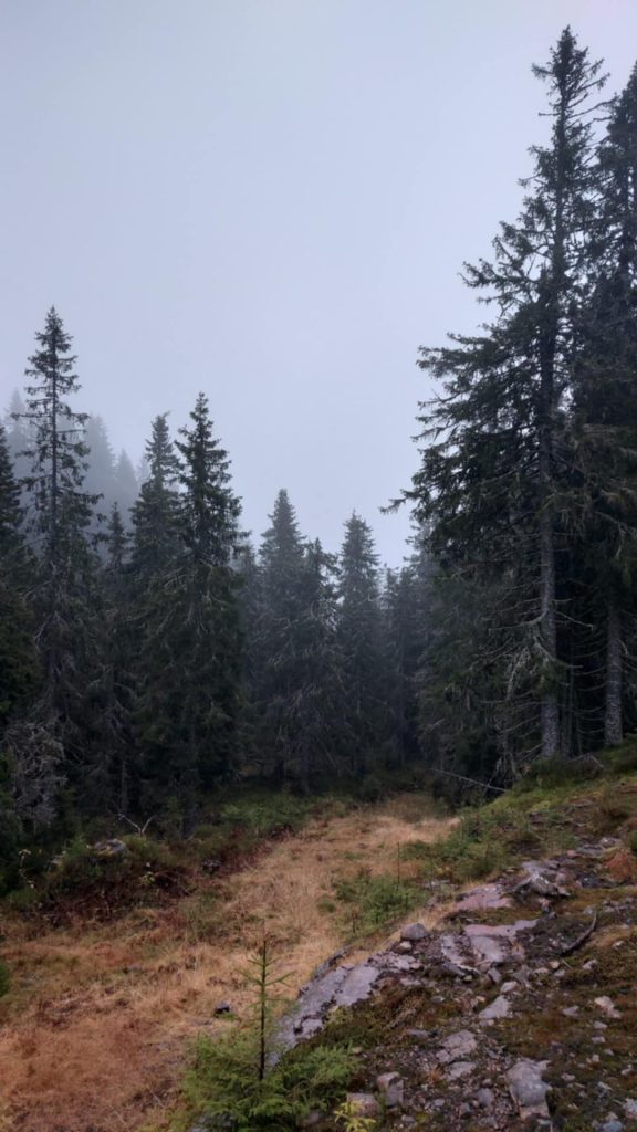 10.08: Foten var av det dårlige slaget, og vi flytter oss i skogen.